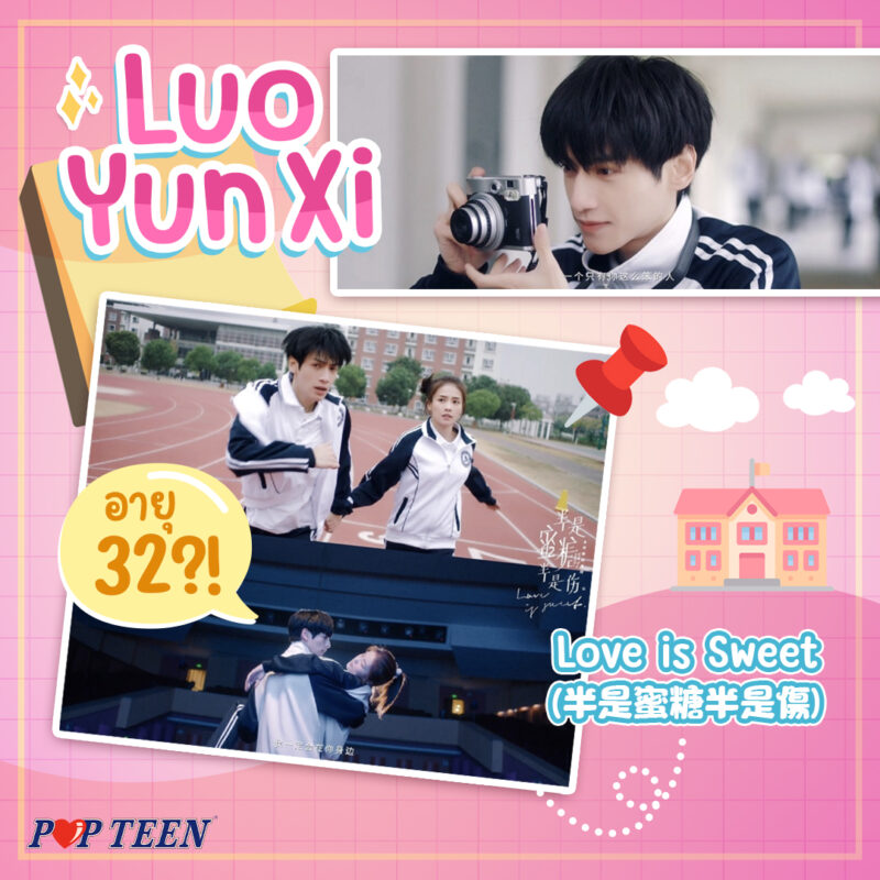 อันดับแรก เป็นของหนุ่ม Luo Yun Xi จากในเรื่อง Love is Sweet (半是蜜糖半是傷) ที่โด่งดัง ที่จะพาเราไปดื่มด่ำกับความรักแบบ First Love กันในสมัยเรียน ซึ่ง Yuan Shuai (รับบทโดย Luo Yun Xi) แอบชอบ Jiang Jun (รับบทโดย Bai Lu) อยู่แบบเงียบ ๆ ใครจะไปเชื่อว่า Luo Yun Xi ในตอนนั้นอายุ 32 แล้ว แต่ยังรับบทเด็กนักเรียนได้แบบเนียนสุด ๆ!