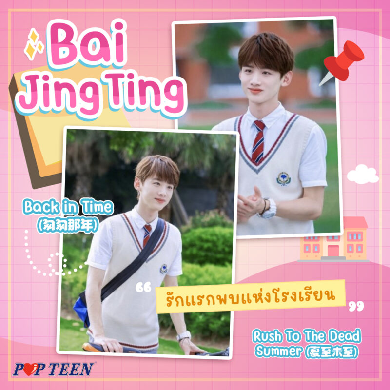 และคนสุดท้าย ต้องไม่พลาดเขาคนนี้ Bai Jing Ting ที่ได้รับการขนานนามว่า “รักแรกพบแห่งโรงเรียน” โดยการันตีด้วยผลงานการแสดงในฐานะนักเรียนหลายเรื่อง ทั้ง Back in Time และ Rush To The Dead Summer และถึงแม้อายุจะใกล้เลขสามแล้ว แต่ก็ยังเล่นเป็นนักเรียนได้เนียนกริบ พร้อมกับรอยยิ้มหวาน ๆ ที่ทำให้สาว ๆ ในโรงเรียนต้องหัวใจไหวหวั่น อยากรู้ว่า “รักแรกพบแห่งโรงเรียน” เป็นอย่างไร ลองติดตามซีรีส์ทั้งสองเรื่องนี้ได้เลยนะ!