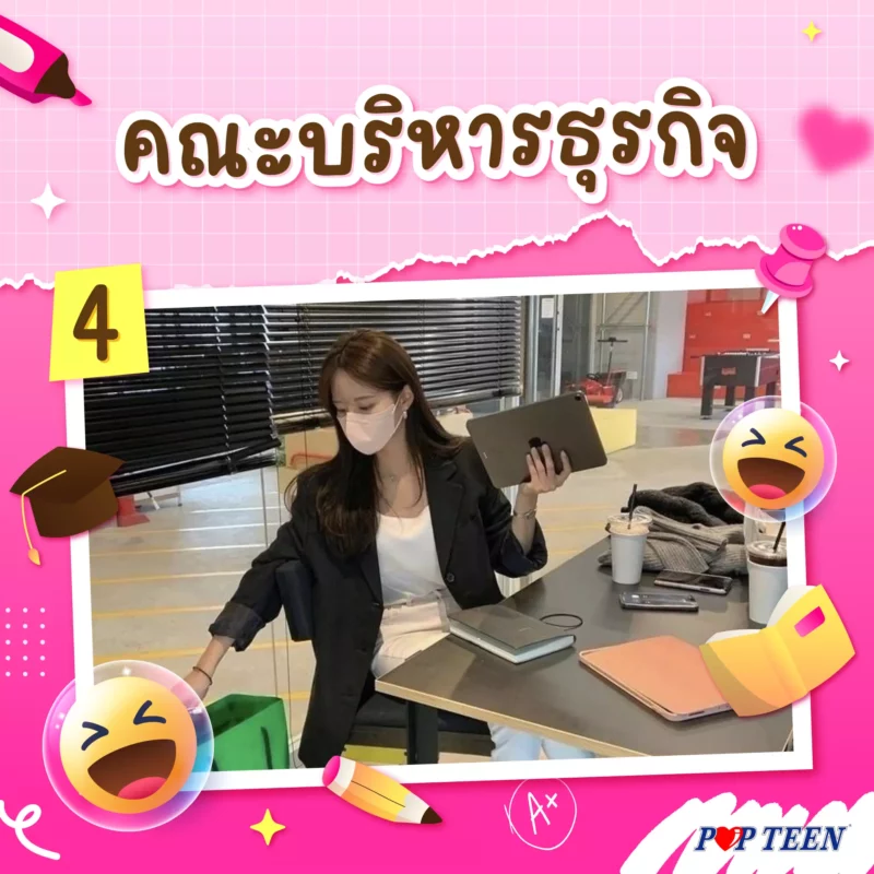 เป็นคณะที่เรียนเกี่ยวกับการจัดการ การวางแผน และกระบวนการทางธุรกิจในทุกๆ ด้าน มีสาขาแตกย่อยออกมาให้เลือกเยอะมาก เช่น การจัดการ การตลาด ธุรกิจระหว่างประเทศ ธนาคารและการเงิน บัญชีและการเงิน เป็นต้น ความที่เป็นด้านการทำธุรกิจ แน่นอนเลยว่าเจอคนเจอสังคมบ่อย ต้องคุยเยอะ ได้ปาร์ตี้บ่อยแน่ๆ