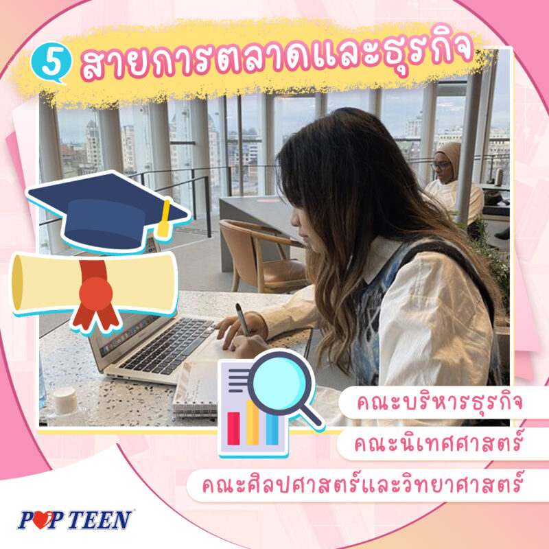 โดยเฉพาะการตลาดออนไลน์ที่บูมสุดๆ บริษัทไหนก็ต้องการคนที่รู้เรื่องออนไลน์เนอะ ซึ่งคณะที่น่าสนใจก็มีคณะบริหารธุรกิจ คณะนิเทศศาสตร์ คณะศิลปะศาสตร์และวิทยาศาสตร์ เป็นต้น เรียนไว้ได้งานแน่นอนค่ะซิส เพราะความต้องการคนในสายงานนี้จะยังคงพุ่งสูงขึ้นอีกเรื่อยๆ ในอนาคต