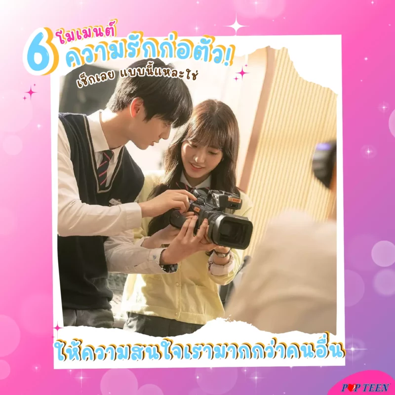 โมเมนต์แรกคือ เขาจะให้ความสนใจเรามากกว่าคนอื่นค่ะ แม้แต่ดีเทลเล็กๆ ก็เก็บหมด เช่น เทคแคร์เราดีเกินคนอื่น อาสาช่วยนู่นนี่ทั้งที่บางทีเราก็ไม่ได้ขอ เดินไปเข้าห้องน้ำเป็นเพื่อน วันไหนกลับบ้านดึกก็อาสาไปส่ง บลา บลา คือรู้ไวมากเวลาเรามีปัญหา เพราะความสนใจทั้งหมดของเขาพุ่งมาที่เราคนเดียว