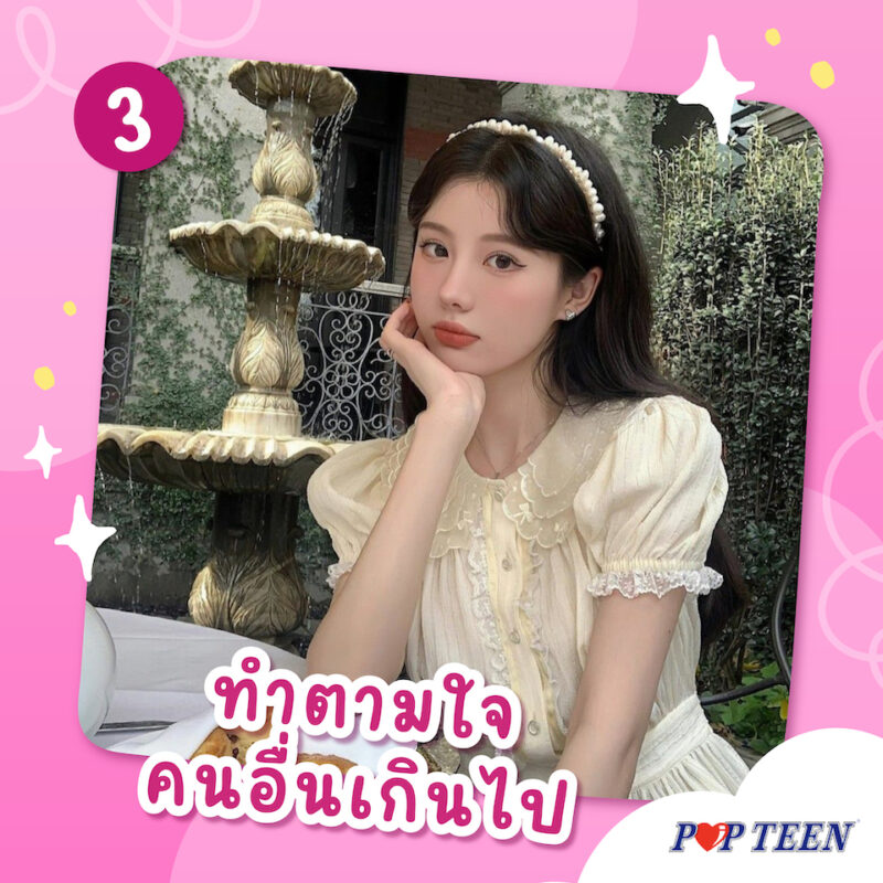 พฤติกรรมยอมทำตามใจคนอื่นแบบที่มากเกินไป หรือพยายามเป็นในสิ่งที่คนอื่นคาดหวัง แรกๆ มันก็พอทนได้ทุกคนนั่นแหละ แต่พอนานไป เราจะรู้สึกกดดัน รู้สึกว่าตัวเองไม่มีความสุขเลย เพราะขนาดจะเป็นตัวเองก็ยังเป็นไม่ได้นี่เนอะ เลิกได้ก็เลิกกันนะคะ