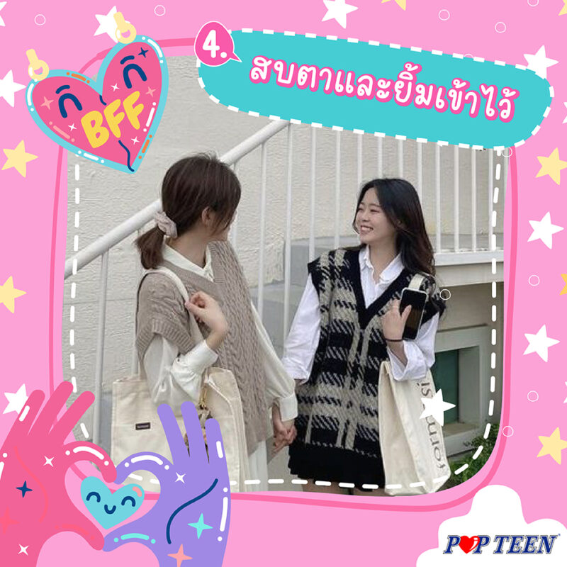 อีกหนึ่งวิธีที่ง่ายแต่ได้ผลดีมากๆ ในการหาเพื่อนใหม่ก็คือ การสบตาและยิ้มให้ค่ะ จะทำให้เราดูเฟรนลี่ น่าคุยด้วย คนจะได้ไม่กลัวเรา คนกล้าเข้ามาหาเรามากขึ้นด้วย