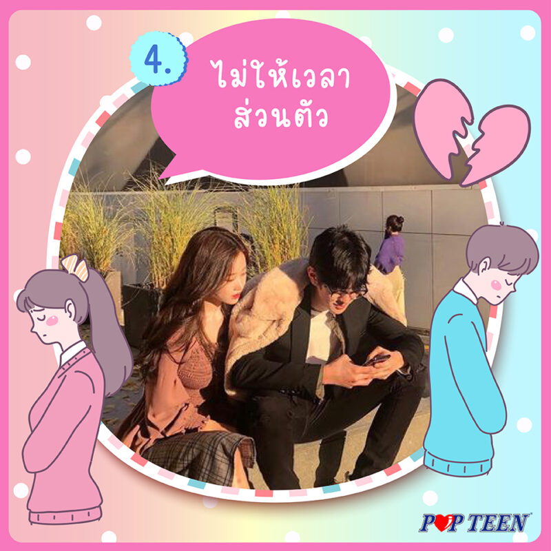 ไม่รู้จักให้สเปซกัน ตามติดไปทุกที่ แต่สาวๆ คะ ถึงจะเป็นแฟนกันแต่หลายคนก็อยากมีเวลาเป็นส่วนตัวนะ ปล่อยให้เขาไปทำอะไรที่อยากทำคนเดียวบ้าง หรือไปกับเพื่อนบ้าง เขาจะได้ไม่อึดอัดจนเบื่อเรานะ