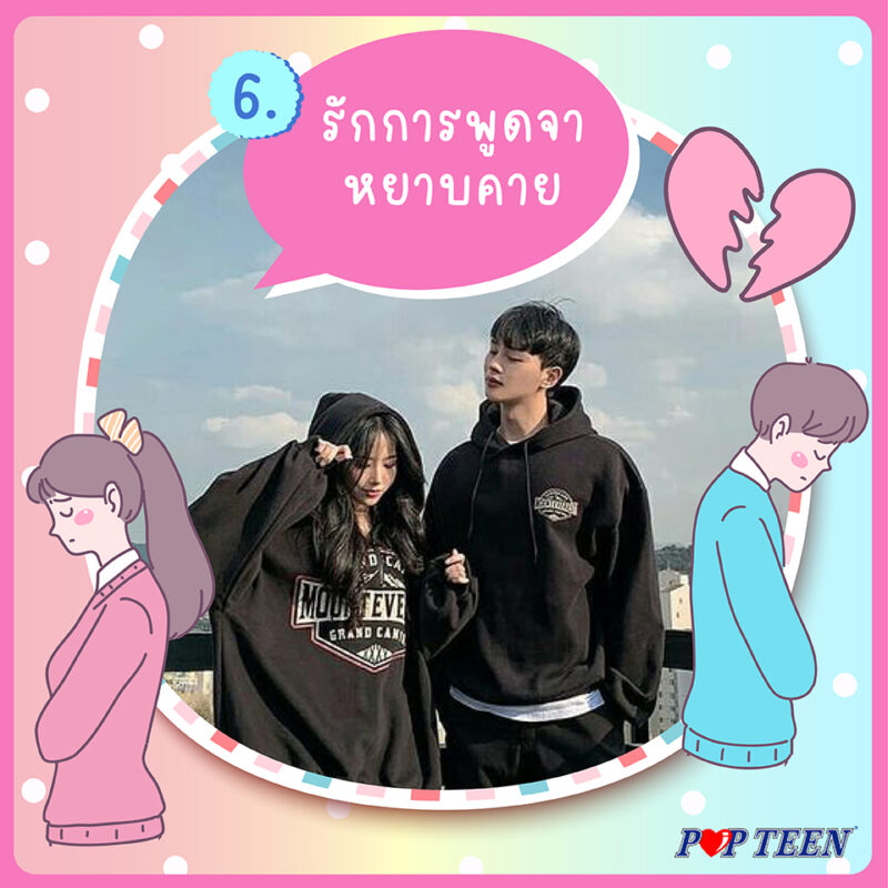 นิสัยชอบพูดจาหยาบคาย แถมเสียงดัง โวยวาย สบถแทบจะทุกคำเวลาคุยกับแฟน โดยไม่คิดถึงความรู้สึกของผู้ชายเลย แบบนี้ก็ไม่ไหวเนอะ หมดอารมณ์มุ้งมิ้งแน่นอน อย่าลืมว่ายังไงการพูดจาน่ารักๆ ก็ทำให้คนรักคนเอ็นดูนะ ถ้าไม่อยากให้ผู้ชายเซย์โน ก็อย่าทำบ่อยๆ ค่ะซิส