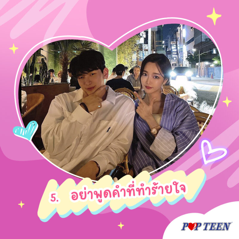 ถ้ารู้ว่าประโยคไหนที่เขาไม่ชอบ หรือคำไหนที่พูดออกไปแล้วเขาจะเสียใจแน่ๆ หรือพวกประโยคท้าเลิก ไล่ไปหาแฟนเก่า อะไรพวกนี้อย่าพูดตอนกำลังทะเลาะกัน เพราะมันอาจสะใจแค่ตอนนั้น แต่หลังจากนั้นหายนะแน่นอน