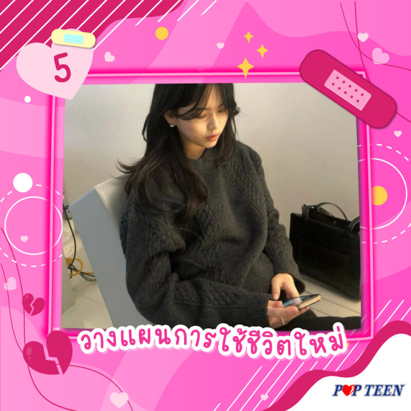 หลีกเลี่ยงสิ่งที่ทำให้คิดถึงเขาให้หมด เอาของไปทิ้ง บล็อกเขาทุกช่องทาง จะได้เลิกส่อง เลิกรับรู้เรื่องของเขา จะทำให้เรารู้สึกกับเขาน้อยลง ก็จะฮีลหัวใจตัวเองง่ายขึ้น