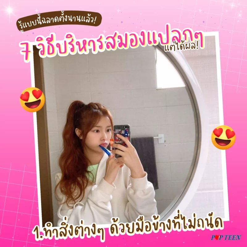 วิธีแรก ให้เราฝึกใช้มือข้างที่ไม่ถนัดทำสิ่งต่างๆ เช่น แปรงฟัน เขียนหนังสือ จับช้อน กดแป้นมือถือ เป็นต้น การเปลี่ยนความเคยชินเดิมๆ จะกระตุ้นให้สมองอีกซีกถูกใช้งาน แค่นี้ก็ช่วยบริหารสมองได้แล้ว