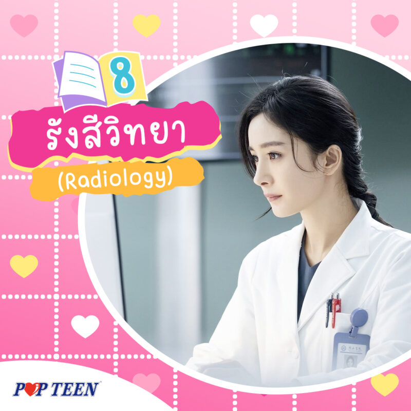 หรือ “รังสีแพทย์” เรียนเกี่ยวกับการสร้างภาพสิ่งต่างๆ ของร่างกายเพื่อเอามาใช้ในการวินิจฉัยโรค โดยใช้เครื่องมือพิเศษต่างๆ ทางการแพทย์เข้ามาช่วย เช่น รังสีเอกซ์ (x-ray), รังสีแกมมา (Gamma ray) จากสารกัมมันตภาพรังสีคลื่นเสียง, คลื่นเสียงความถี่สูง (ultrasound) และคลื่นแม่เหล็กไฟฟ้า (Nuclear Magnetic Resonance Imaging) เป็นต้น ยกตัวอย่างโรคที่ต้องใช้วิธีการรักษาด้วยการฉายรังสีก็คือโรคมะเร็งนั่นเองค่ะ