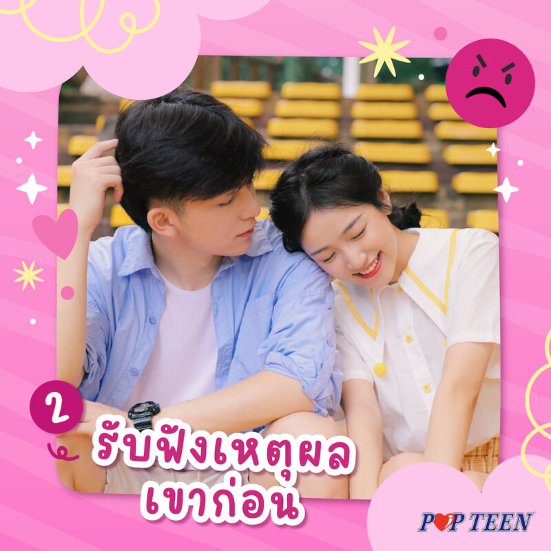 ถ้าแฟนกำลังหงุดหงิดมากๆ ให้คุยสักสามสี่ประโยค สักพักเนียนๆ เปลี่ยนไปทำอย่างอื่นเลยค่ะ อย่าตัดจบทันทีนะ จะดูไม่ใส่ใจไป เราอาจเนียนคุยเรื่องอื่น หรือชวนไปหาของกิน หรือไปหากิจกรรมทำก็ได้ค่ะ เน้นสิ่งที่แฟนเราชอบ สักพักเขาจะใจเย็นและลืมไปเลยว่าต้องหงุดหงิด