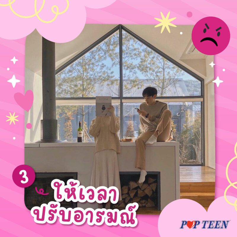 ในช่วงที่อารมณ์แฟนเรากำลังพีค เราควรให้เวลาเขาสงบสติอารมณ์อยู่คนเดียวสักพักค่ะ พอดูเริ่มอารมณ์ดีขึ้นแล้ว ค่อยเข้าไปพูดคุยด้วยเหตุผล อย่าไปเร่งให้เขากดดัน เพราะจะยิ่งระเบิดหนักกว่าเดิมได้