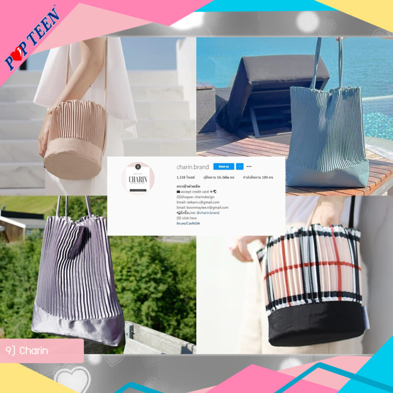 อีกหนึ่งร้านกระเป๋าผ้าที่มีสไตล์ของตัวเองสุดๆ เพราะน้องเป็นกระเป๋าผ้าแบบอัดพลีท ใช้ผ้าซาตินอย่างดี มีหลายสีเลยค่ะ สะพายแล้วสวยมากๆ ดูชิคดูเก๋กว่าเดิมไปอีก