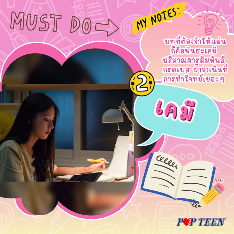 เริ่มต้นจากความเข้าใจและฝึกทำโจทย์บ่อยมากๆ เพราะแนวโจทย์เคมีออกหลากหลาย มีแบบประยุกต์ใหม่ทุกปี ส่วนบทที่ต้องจำให้แม่นก็คือพันธะเคมี ปริมาณสารสัมพันธ์ กรดเบส ย้ำว่าเน้นที่การทำโจทย์เยอะๆ ค่ะซิส