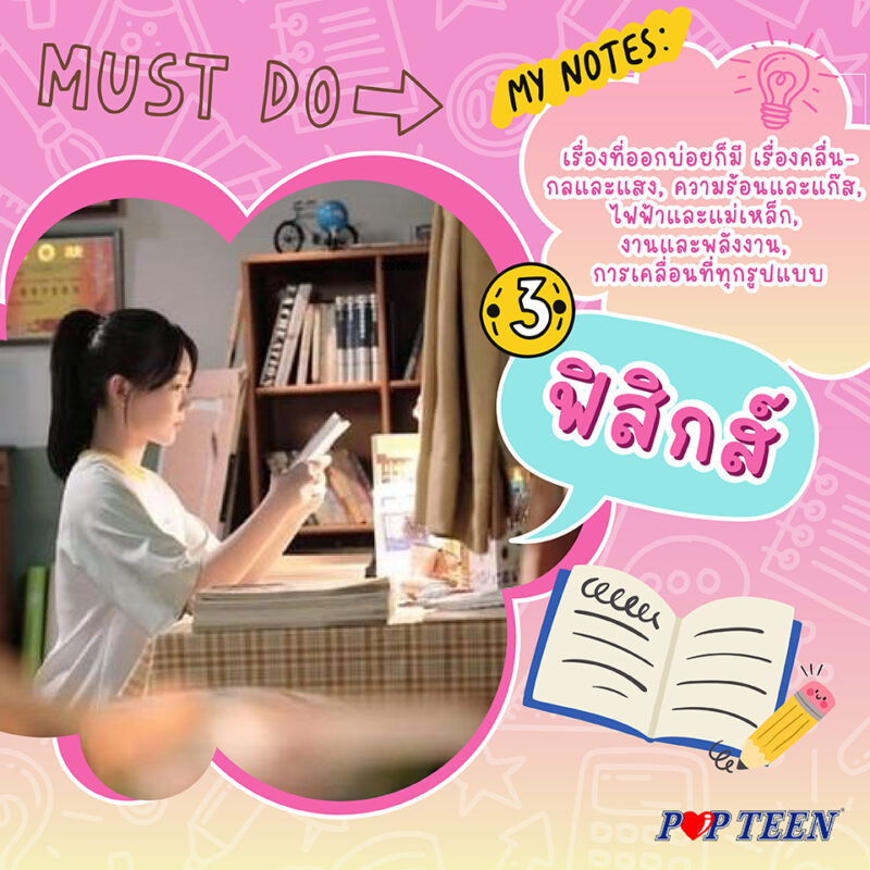 วิชาที่ยังต้องเน้นเรื่องสูตร โดยเฉพาะสูตรที่สำคัญ ให้ลองทำข้อสอบวนไปค่ะ ส่วนใหญ่จะเจอแนวข้อสอบและโจทย์ที่ออกซ้ำทุกปี เรื่องที่ออกบ่อยก็มีเรื่องคลื่นกลและแสง, ความร้อนและแก๊ส, ไฟฟ้าและแม่เหล็ก, งานและพลังงาน, การเคลื่อนที่ทุกรูปแบบ