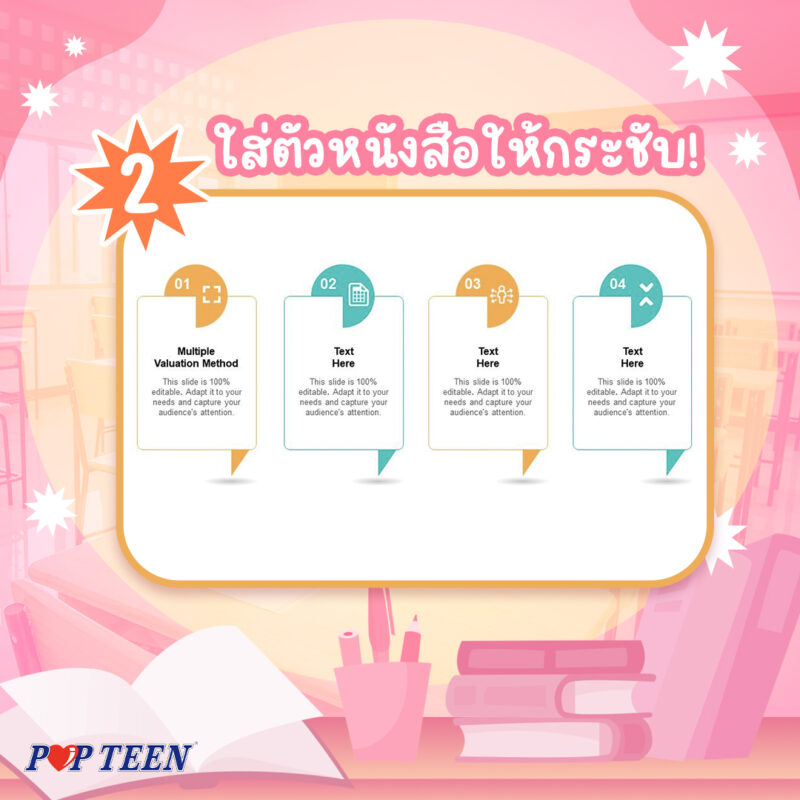 เนื้อหาที่อยู่ในสไลด์อย่าเยอะ!! เน้นกระชับค่ะ แนะนำให้ใส่เฉพาะหัวข้อ แล้วใช้วิธีอธิบายรายละเอียดเอาค่ะ คนฟังจะมีจุดโฟกัสและฟังเข้าใจ แต่เราก็ต้องเตรียมท่องสคริปต์ให้แม่นด้วยนะ จะเพอร์เฟกต์มากกกก
