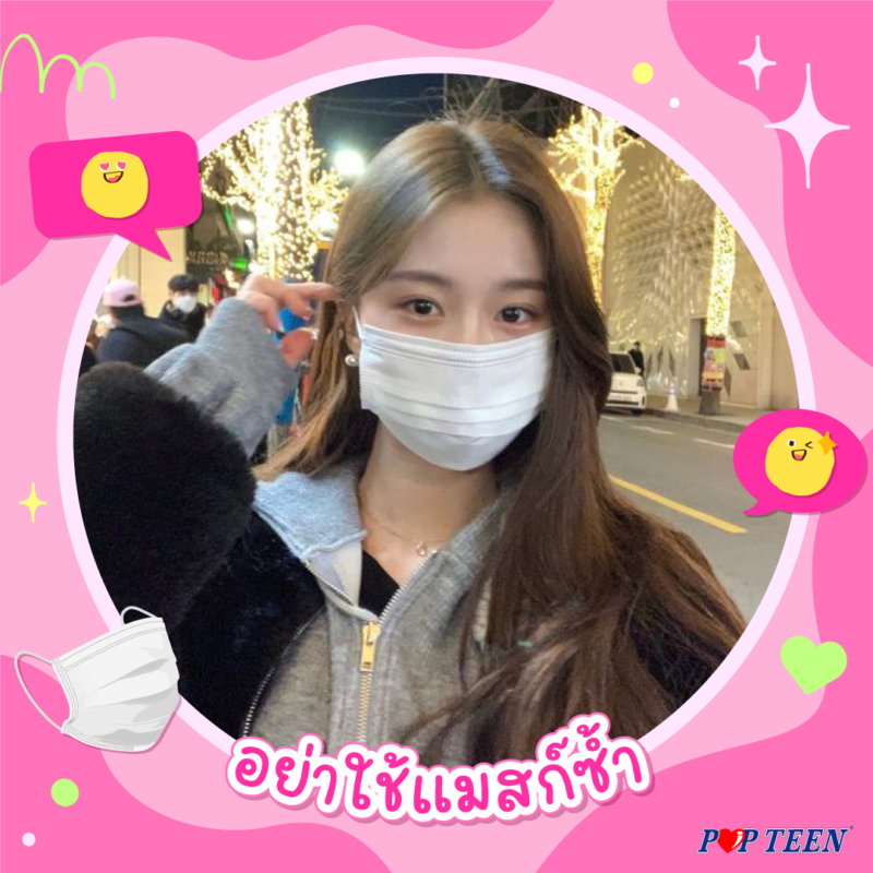 ควรเปลี่ยนแมสก์ทุกวันค่ะ เพราะแต่ละวันเราเจอทั้งฝุ่น ทั้งมลภาวะ เชื้อโรค และที่สำคัญก็คือละอองน้ำลายของเราเอง ถ้าเราใช้แมสก์ซ้ำ พวกสิ่งสกปรกที่เกาะติดแมสก์ก็จะทำให้สิวเห่อจนผิวพังได้