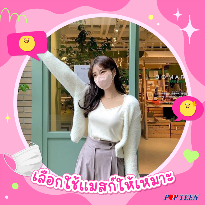 ใส่แมสก์ให้พอดีกับใบหน้า ไม่แน่นหรือหลวมเกินไป เพราะถ้าใส่แน่นเกินไป ก็จะทำให้ตัวแมสก์เสียดสีกับผิวหน้าเราจนอาจเกิดอาการผิวอักเสบได้ และระหว่างวันพยายามไม่ขยับ หรือจับแมสก์บ่อยๆ เพื่อลดการเสียดสีกับผิวค่ะ
