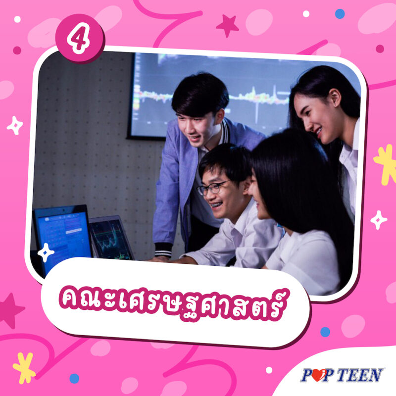 คณะที่เรียนเกี่ยวกับหน่วยเศรษฐกิจ ภาพรวมของตลาดและการค้าต่างๆ คณิตศาสตร์ในคณะนี้คือแคลคูลัสและวิชาเกี่ยวกับสถิติทั้งขั้นต้นและขั้นสูง เป็นอีกคณะที่คณิตศาสตร์เยอะและโหดมาก สาขาวิชาที่น่าสนใจ เช่น สาขาวิชาเศรษฐศาสตร์การเงิน, สาขาวิชาเศรษฐศาสตร์การคลัง, สาขาวิชาเศรษฐศาสตร์การประกอบการ, สาขาวิชาเศรษฐศาสตร์ระหว่างประเทศ, สาขาวิชาเศรษฐศาสตร์ธุรกิจ เป็นต้น