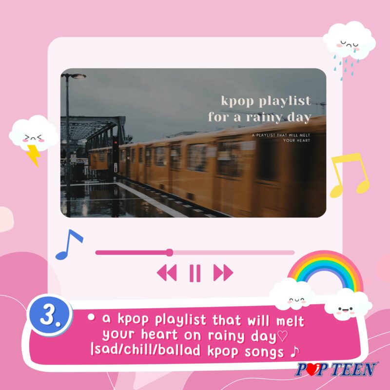 กลับมาที่เพลย์ลิสต์เพลงเกาหลีกันอีกสักรอบ! เพราะรอบนี้ความหมายเพลงเกี่ยวกับฝนที่แท้ทรู พอมาฟังตอนฝนตก ก็ยิ่งอินเข้าไปอีก แล้วแต่ละเพลงก็เพราะมากๆ ด้วยค่ะ