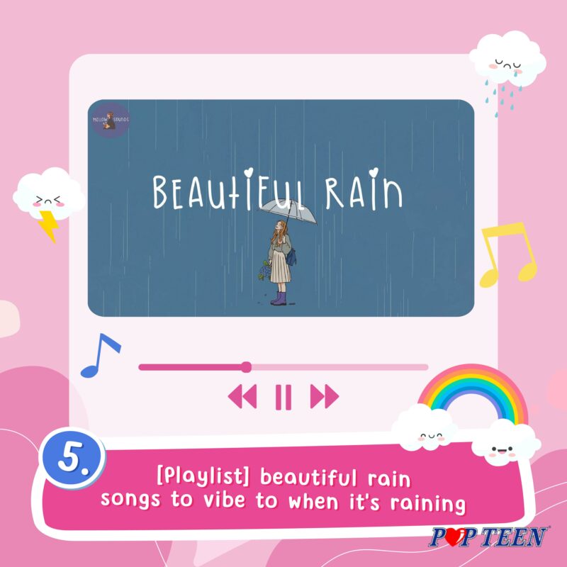 เพลย์ลิสต์จากช่องเพลงสากล เน้นแนวป๊อบฟังได้ชิลๆ บางเพลงก็ไม่ได้เกี่ยวกับฝนใดใด แต่บีทมันได้ฟีลลิ่งอยู่ค่ะ เลยหยิบมาแนะนำกันเป็นเพลย์ลิสต์แรกเลยยย