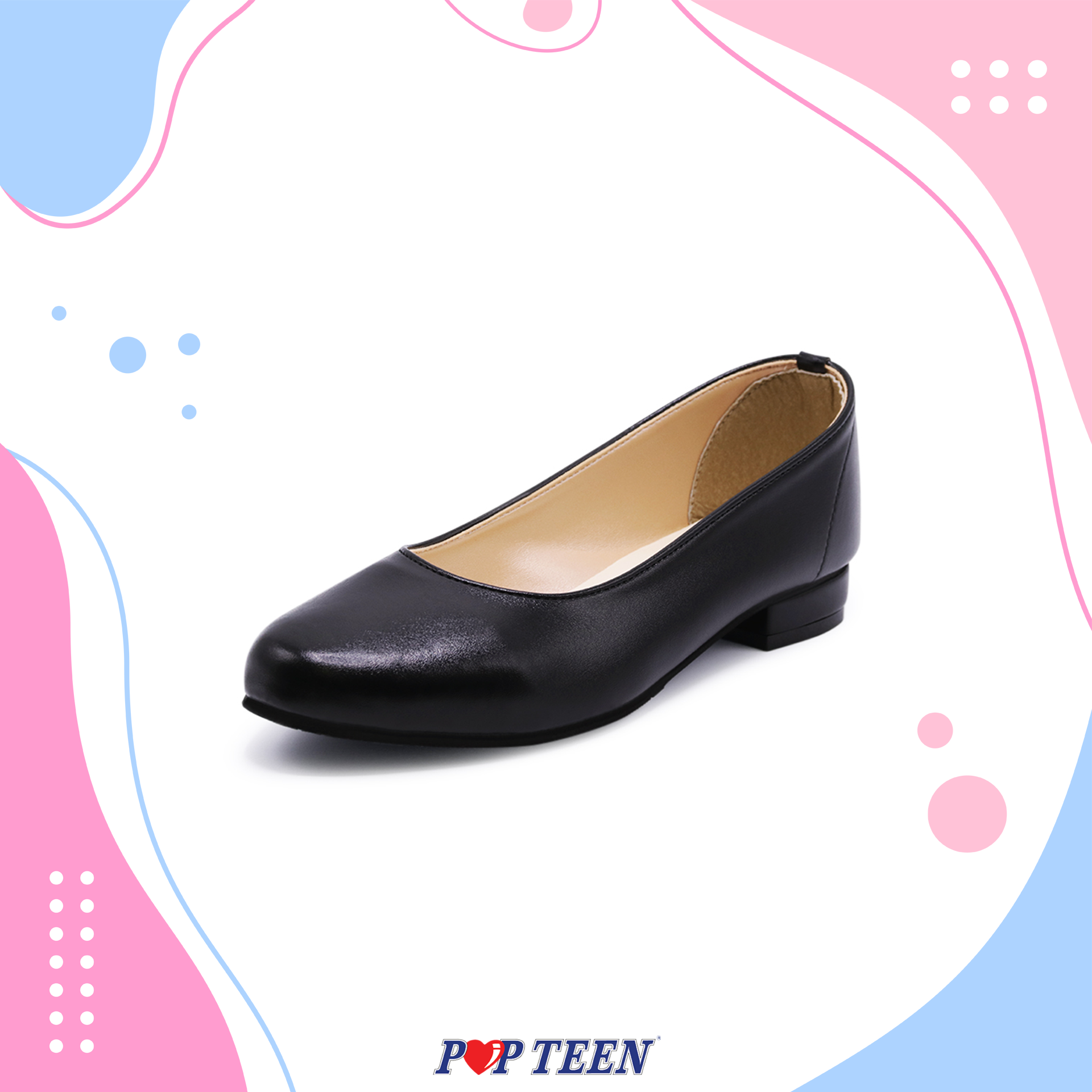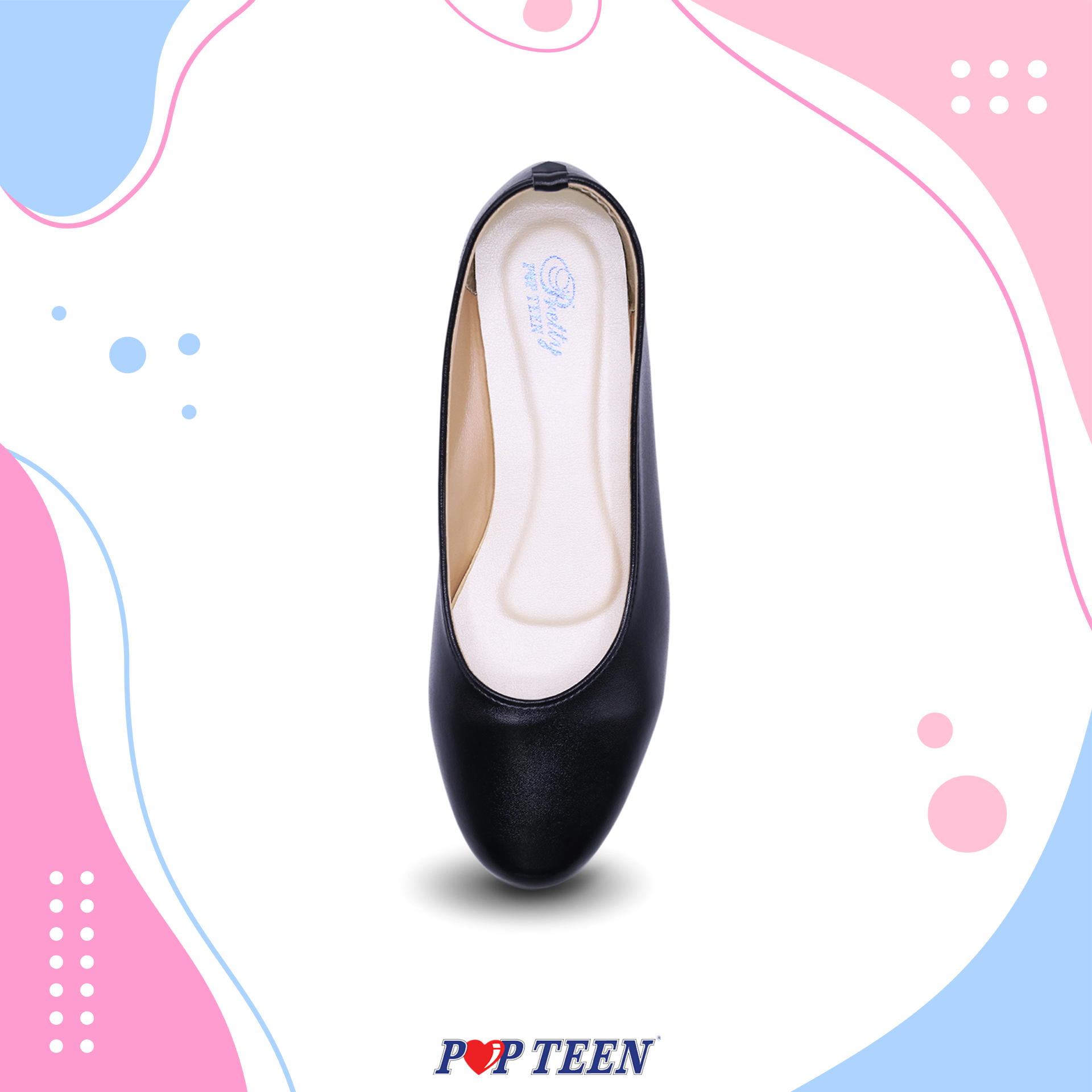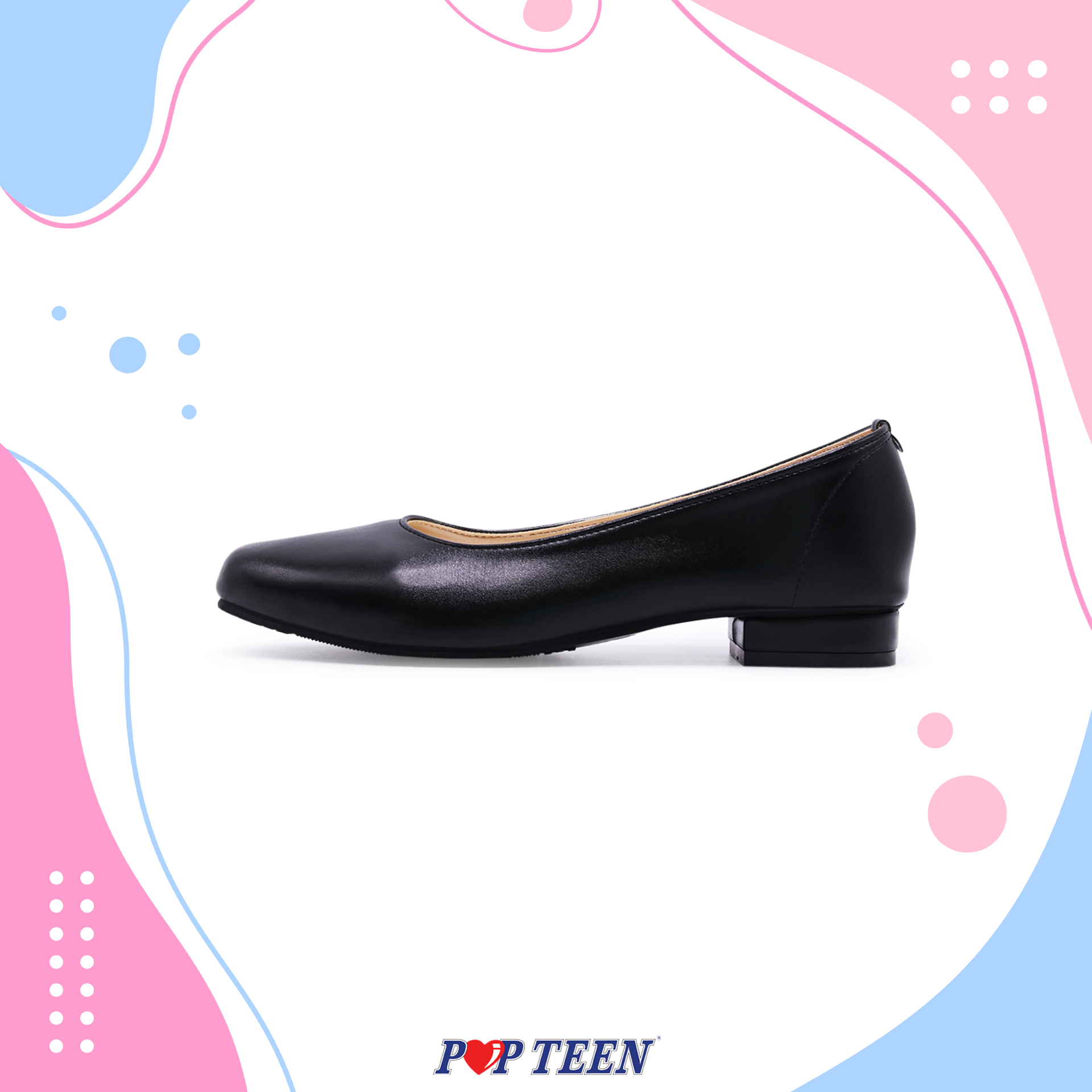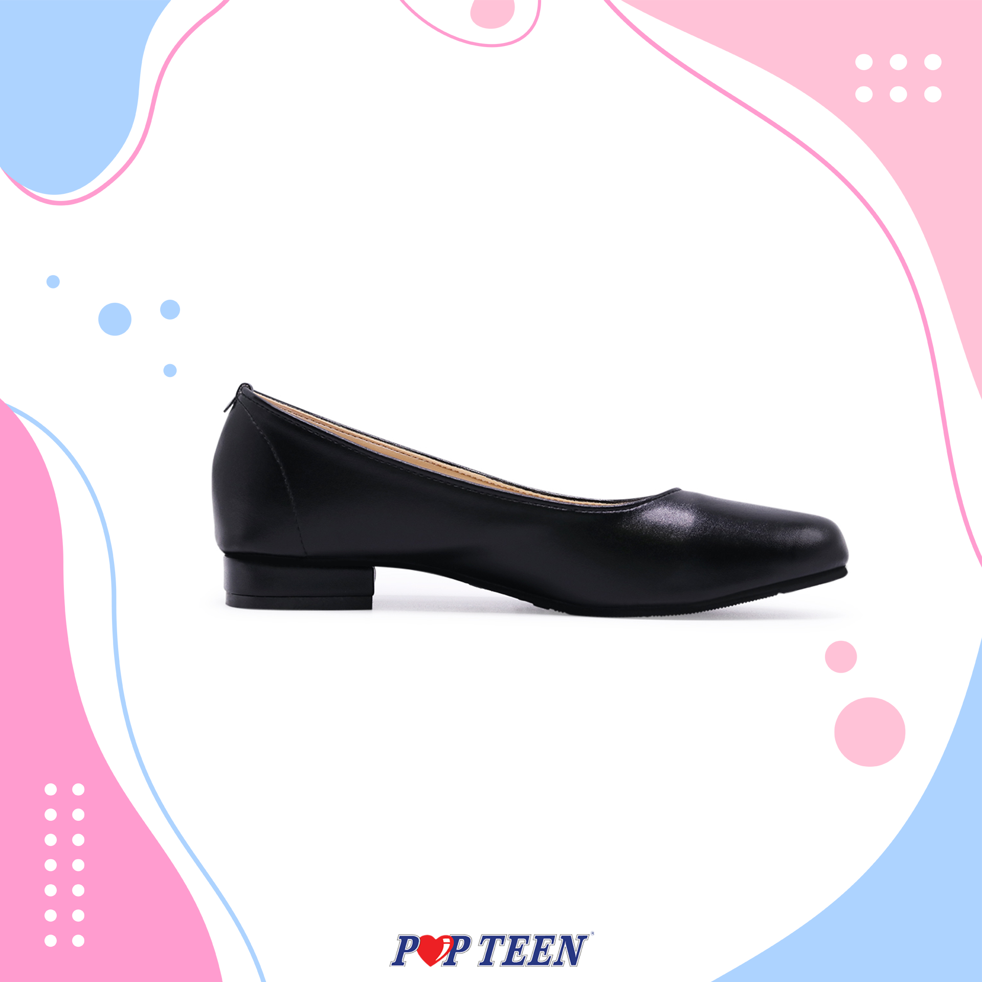 รองเท้าคัทชู Pretty Popteen รุ่น PT-2417 รองเท้ารับปริญญา รองเท้านักศึกษา รองเท้าส้นสูงหุ้มส้นสำหรับผู้หญิง ดีไซน์หัวรองเท้ามน แบบเรียบคลาสสิก ความสูง 1 นิ้ว