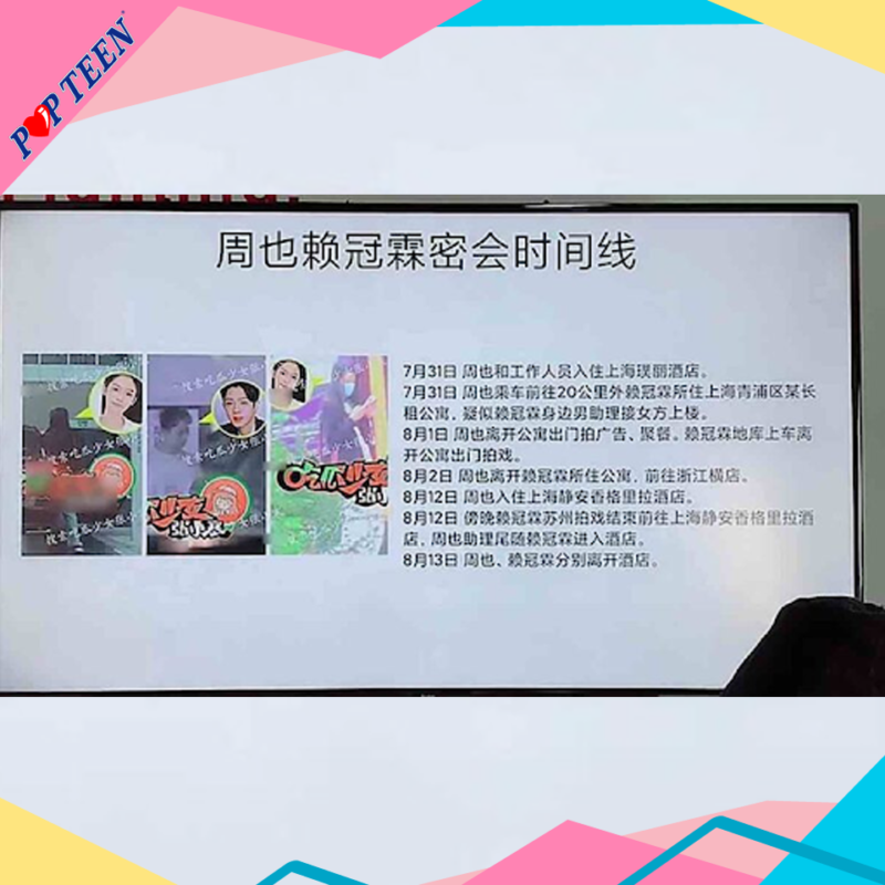 ตำนานอมตะถือกำเนิดขึ้นแล้ว เมื่อวันที่ 19 สิงหาคมที่ผ่านมา มีข่าวลือระหว่างการเดตระหว่าง Zhou Ye (周也) และ Lai Kuanlin (賴冠霖) หลังจากที่บัญชี yxh บอกว่าทั้งคู่ได้มาเจอกันถึง 4 วัน ในระหว่างช่วง Live ถ่ายทอดสด ซึ่งมีการกล่างอ้างว่า Zhou Ye และ Lai Kuanlin ได้ขอให้ทีมงานตัวเองคอยตามเก็บร่องรอยของพวกเขาด้วย ซึ่งเจ้าของบัญชีนี้ที่ชื่อ Zhang Xiaohan เป็นคนคนเดียวกับที่เคยใช้การ์ตูนสี่ช่องบรรยายเรื่องราวของเซเลบชายระดับ A ที่เดตกับแฟนคลับมาถึงสองปี แล้วก็หลอกเธอ ซึ่งข่าวลือนี้ก็มีการออกมาหักล้างในทันที